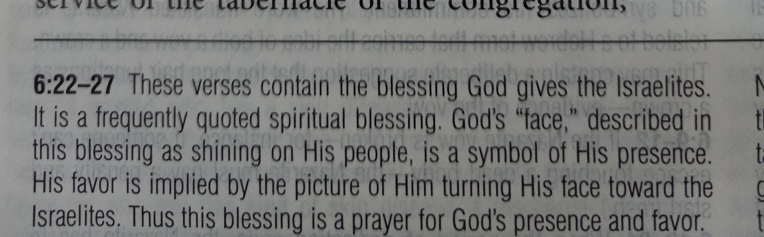 Numbers 6: (from my Bible notes)verses 1-20: These verses outline the vow of the Nazarite. Temporary vow of spiritual dedication. There are three marks of this vow, called a separation to God: abstaining from wine and grape products, not touching dead bodies, and not cutting one’s hair. The word translated to the Nazarite is related to a Hebrew term that carries the idea of both a vow and a crown. Below is notes from my Bible on verses 22-27.